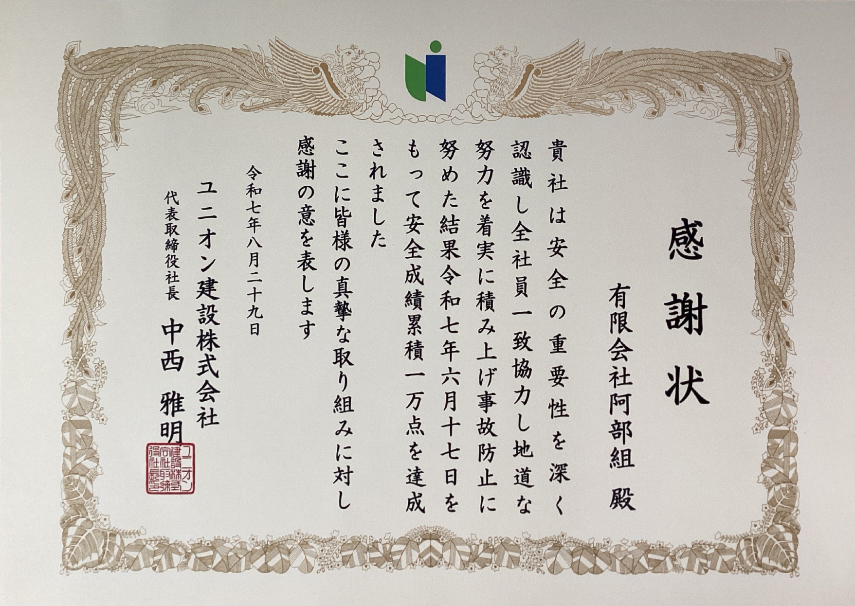 事業場表彰(感謝状)